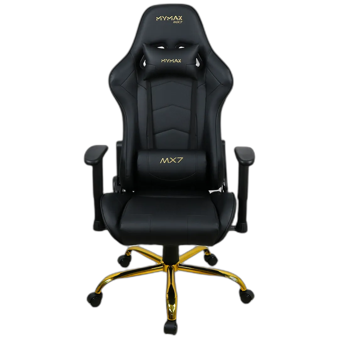 A Cadeira Gamer Mymax MX7 Gold Edition Preto é a escolha definitiva para quem busca design premium inspirado em carros esportivos com ergonomia profissional e conforto superior. Equipada com revestimento em tecido sintético PU de alta qualidade e espuma com densidade controlada D70 no encosto e D28 no assento, esta cadeira oferece suporte firme e durável que mantém o conforto mesmo após longas horas de uso. Com inclinação regulável até 135°, você ajusta a postura ideal para foco máximo ou relaxamento entre partidas, enquanto a função balanço adiciona movimento dinâmico para maior conforto. A estrutura metálica robusta suporta até 150kg com segurança absoluta, enquanto o gás Classe 3 de 100mm permite ajuste de altura de até 10cm para encontrar a posição perfeita. Os braços 2D reguláveis ajustam altura e lateralidade para reduzir tensão nos ombros e pulsos durante longas sessões. As rodas premium de alta resistência deslizam suavemente sem danificar pisos, enquanto a base giratória de 68cm garante estabilidade máxima. Com almofadas lombar e de pescoço, você tem suporte extra nos pontos críticos para manter postura saudável. Esta Gold Edition traz acabamentos especiais que elevam o visual do seu setup gamer a outro nível de sofisticação!