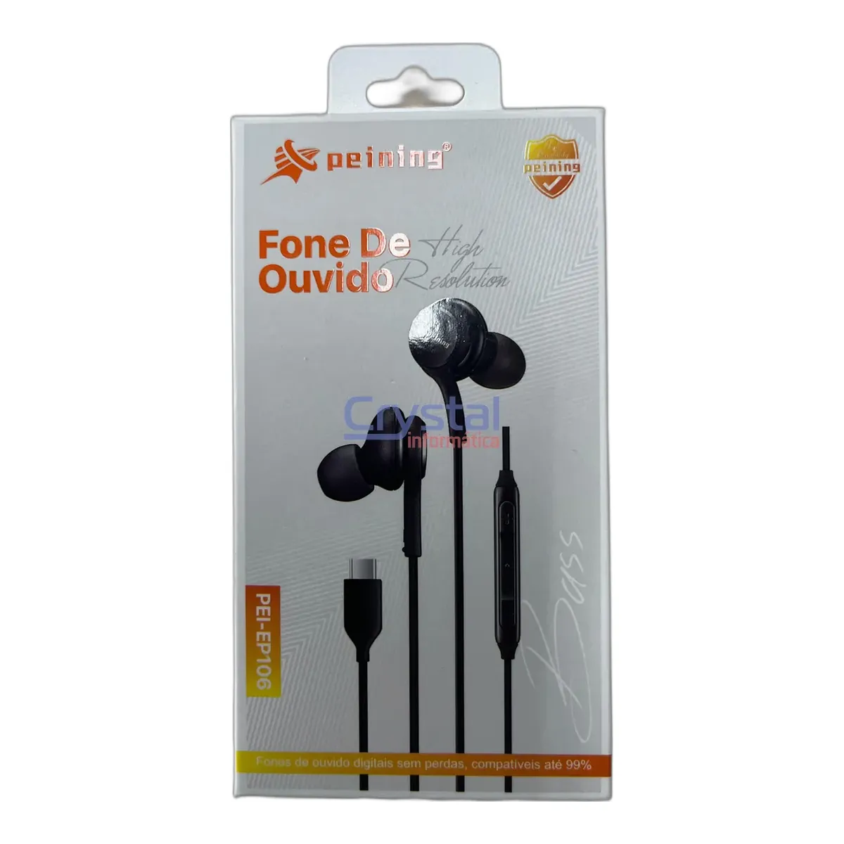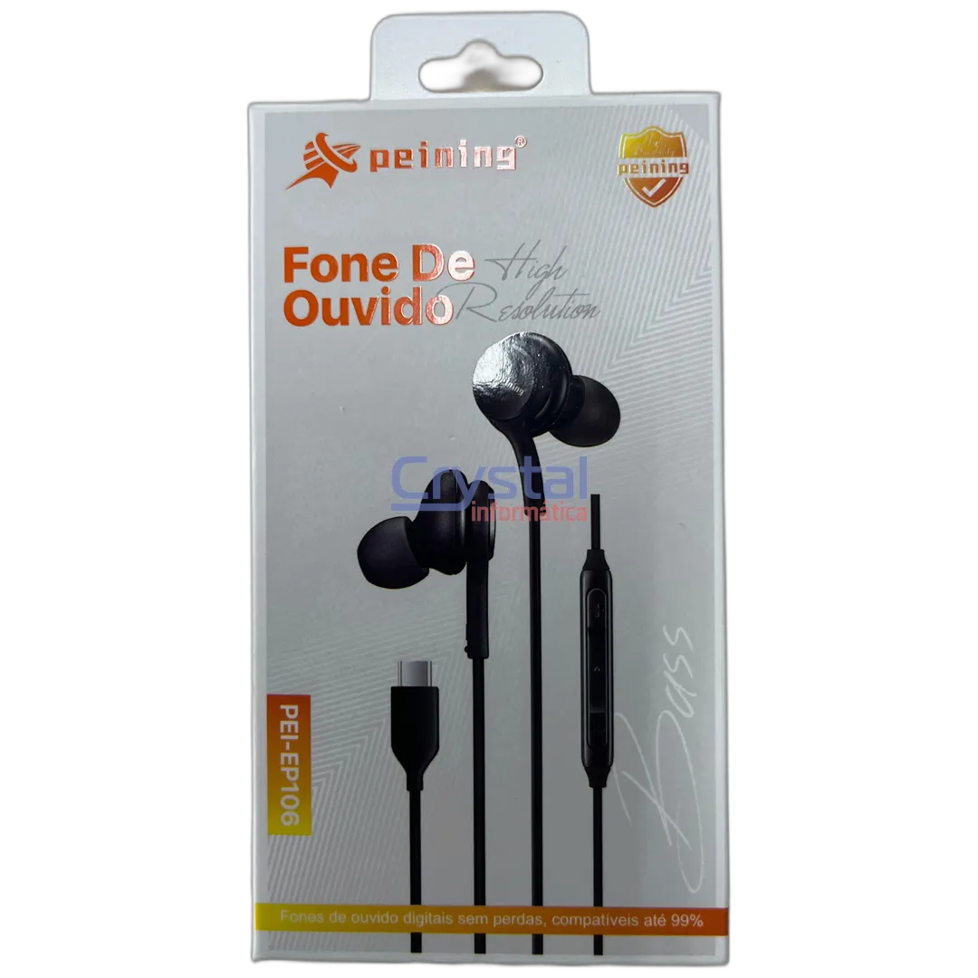 O Fone de Ouvido Intra Tipo-C Peining PEI-EP106 oferece áudio estéreo de alta fidelidade com conexão digital estável. Desenvolvido para smartphones e tablets com porta USB-C, possui estrutura leve, design ergonômico e microfone embutido, garantindo clareza em chamadas e conforto prolongado no uso diário.