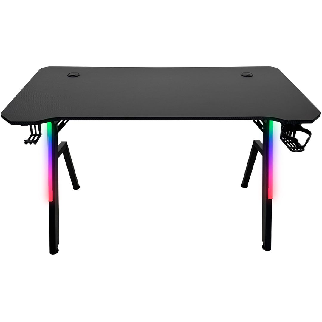 Mesa Gamer Kalkan Iluminação RGB 120x61cm - Setup Gaming Profissional — projetada para quem quer um espaço de jogo e trabalho organizado, bonito e ergonômico. O tampo resistente, a estrutura em aço e a iluminação RGB lateral criam um cenário imersivo, enquanto o sistema de passagem de cabos, porta-copo e suporte para headset resolvem dores comuns do setup: fios aparentes, falta de espaço útil e desconforto após longas horas. Resultado: mesa estável, visual premium e foco total na gameplay ou produtividade.