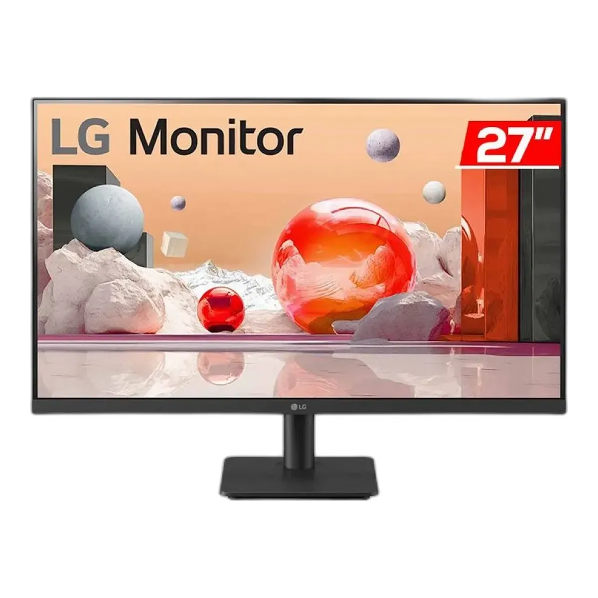 O Monitor LG 27MS500-B possui painel IPS de 27 polegadas com resolução Full HD (1920x1080), taxa de atualização de 100Hz, tempo de resposta de 5ms e design 3-Side Borderless com bordas finas em três lados. O modelo inclui 2 entradas HDMI 1.4, saída de áudio P2 estéreo, suporte VESA 75x75mm e cabo HDMI na caixa.