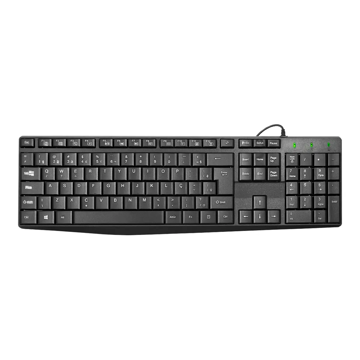Não. Trata-se de dispositivo USB Plug and Play — Windows 10 e 11 reconhecem o teclado ABNT2 nativamente sem necessidade de driver adicional ou software de configuração. Ao conectar à porta USB, o sistema detecta automaticamente o layout ABNT2 e disponibiliza todas as funções de entrada (incluindo ç, acentos e caracteres especiais brasileiros). Não há software de programação de teclas ou customização de perfil disponível.