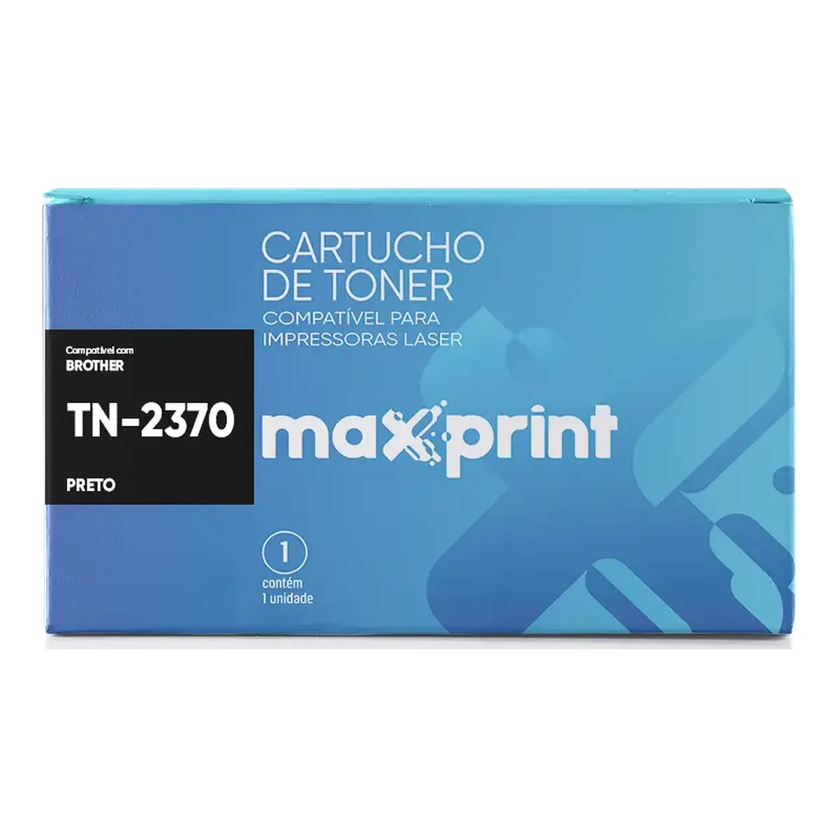 O Cartucho de Toner Maxprint TN-2370 Compatível Brother é um toner preto com rendimento de 2.600 páginas (5% de cobertura em A4), compatível com impressoras e multifuncionais Brother das linhas HL-L2, DCP-L2 e MFC-L2. Atenção: este produto é somente o cartucho de toner — o tambor fotossensível (cilindro DR-2340) não está incluso e deve ser adquirido separadamente quando necessário. Nas impressoras Brother que utilizam o TN-2370, o toner e o tambor são componentes distintos e trocados em momentos diferentes — o tambor tem vida útil de aproximadamente 12.000 páginas, enquanto o toner é trocado a cada 2.600 páginas.